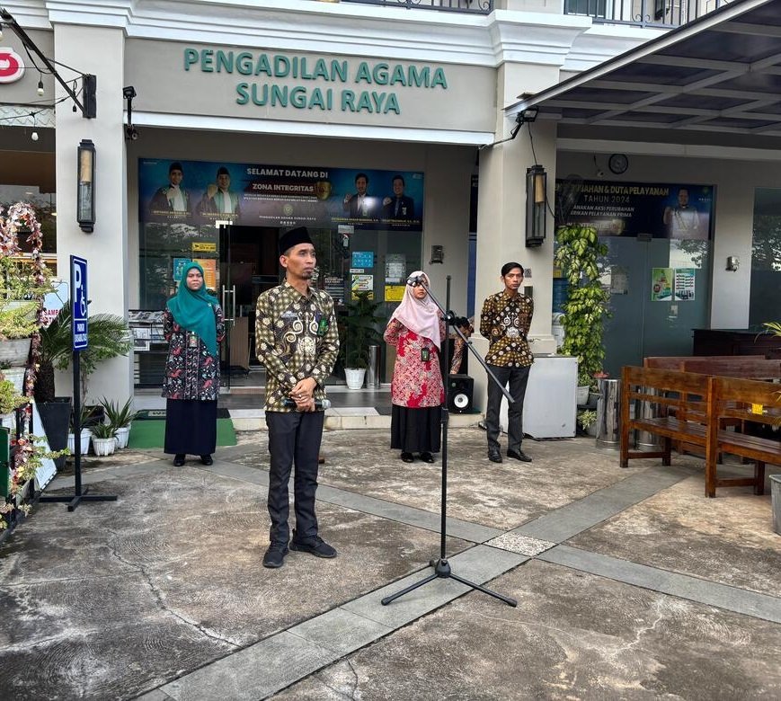 Sungai Raya, 17 Januari 2025 – Dalam suasana khidmat, seluruh pegawai Pengadilan Agama Sungai Raya mengikuti apel rutin pada hari Jumat. Apel yang dipimpin langsung oleh Ketua Pengadilan Agama Sungai Raya, Bapak Miftahul Arwani, S.H.I., ini menjadi momentum penting untuk memberikan arahan dan semangat menjelang pelaksanaan Rapat Kerja Tahun 2025.
