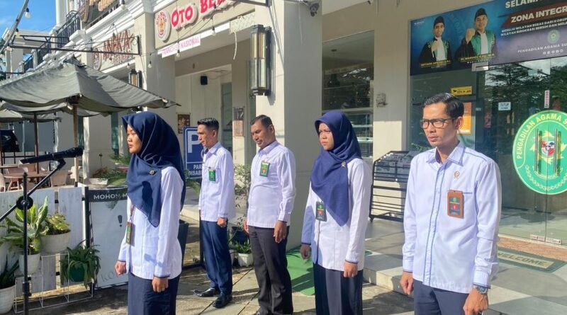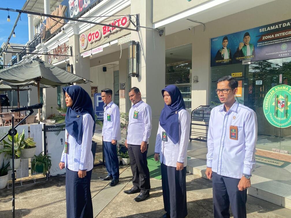 Pengadilan Agama Sungai Raya melaksanakan kegiatan rutin apel pagi pada Senin (10/02). Kegiatan apel tersebut dilaksanakan di halaman kantor pengadilan dengan diikuti oleh seluruh hakim dan pegawai.