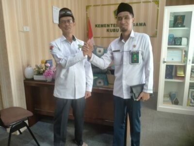 Sungai Raya, 13/01/2025 – Dengan niat semakin meneguhkan kerja sama dan jalinan silaturrahmi yang sudah terbangun dengan apik, siang ini Ketua Pengadilan Agama (PA) Sungai Raya, Miftahul Arwani menyengajakan kunjung silaturahmi ke Kantor Kementerian Kementerian Agama (Kankemenag) Kabupaten Kubu Raya. Disambut dengan baik di Ruangannya, suasana akrab terasa sepanjang obrolan dan diskusi yang terjadi antara Miftahul Arwani selaku Ketua PA Sungai Raya dan H. Ekhsan selaku Kepala Kankemenag Kabupaten Kubu Raya.