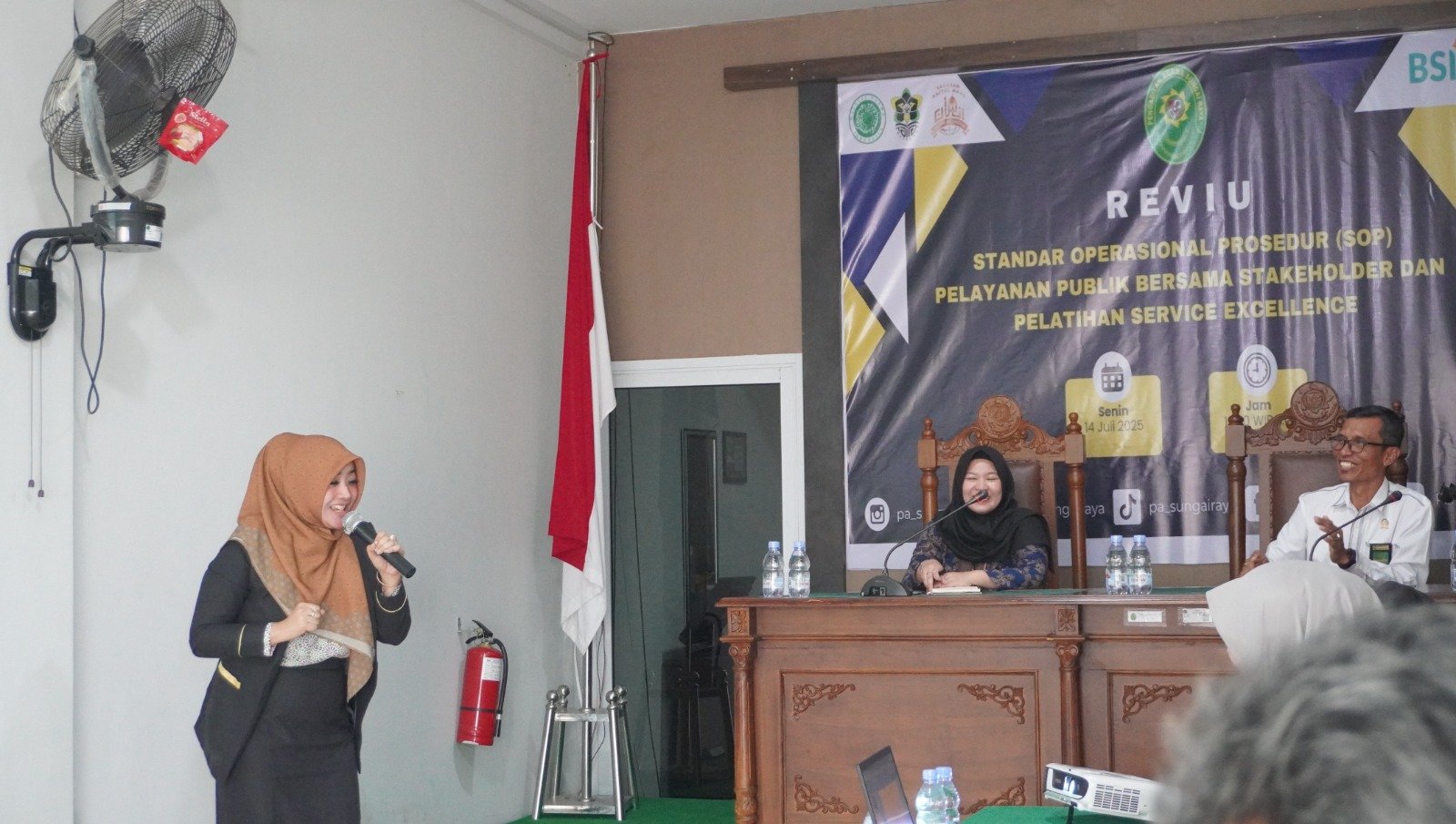 Sungai Raya, Kalimantan Barat – Pengadilan Agama Sungai Raya menunjukkan komitmennya dalam meningkatkan kualitas pelayanan publik dengan menyelenggarakan sesi materi “Service Excellent” hari Senin, 14 Juli 2025. Acara ini menghadirkan Ibu Tri Handayani, seorang Branding Representative dari BSI Cabang Kubu Raya, yang berbagi wawasan mendalam tentang pentingnya pelayanan prima dalam membangun citra positif institusi.
