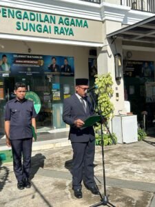 Sungai Raya, 10 November 2024 – Pengadilan Agama Sungai Raya melaksanakan upacara peringatan Hari Pahlawan dengan khidmat. Bertindak sebagai pembina upacara adalah Wakil Ketua Pengadilan Agama Sungai Raya, Dr. Massadi, S.Ag., M.H.