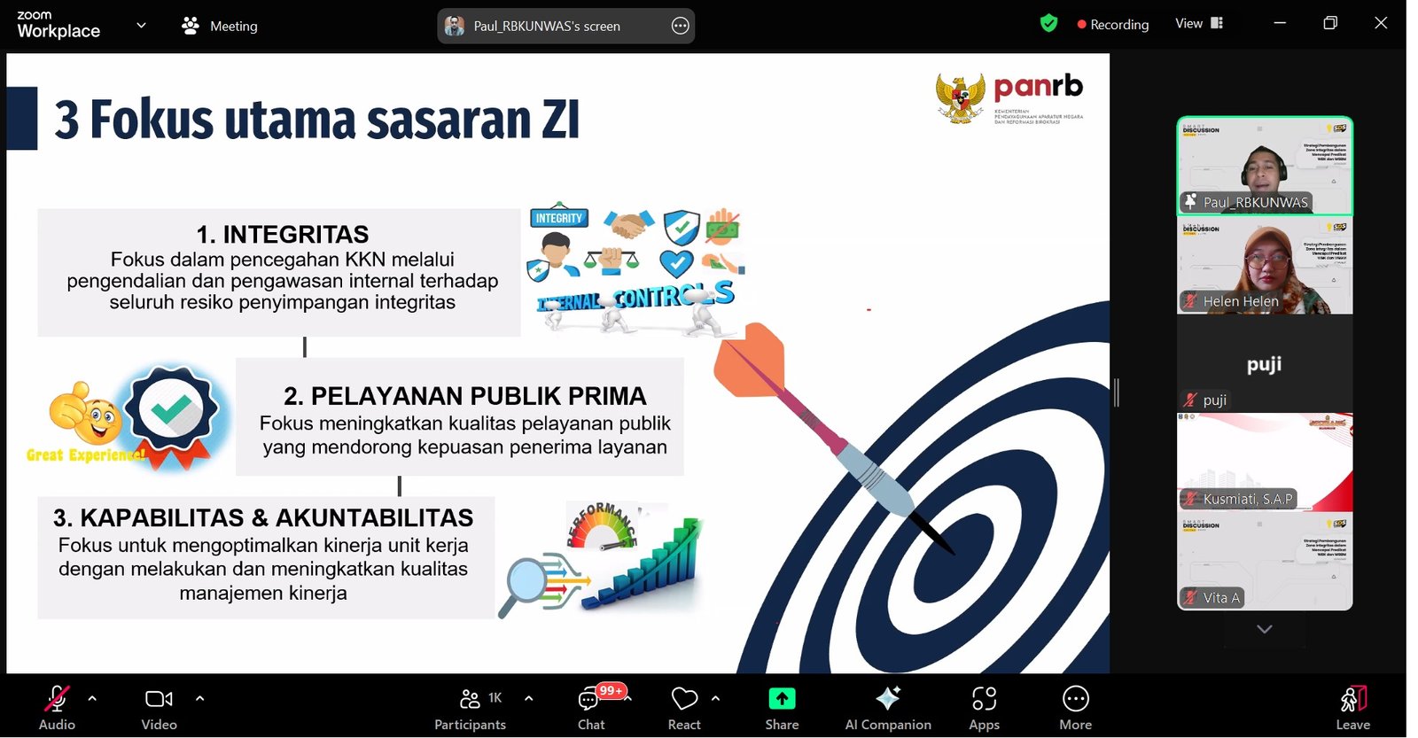 Dalam paparannya, Paulus menekankan pentingnya perubahan mindset dan budaya kerja dalam membangun Zona Integritas. Beliau juga menyampaikan bahwa pembangunan Zona Integritas bukan hanya sekadar program, tetapi merupakan suatu proses yang berkelanjutan dan membutuhkan komitmen dari seluruh pihak.