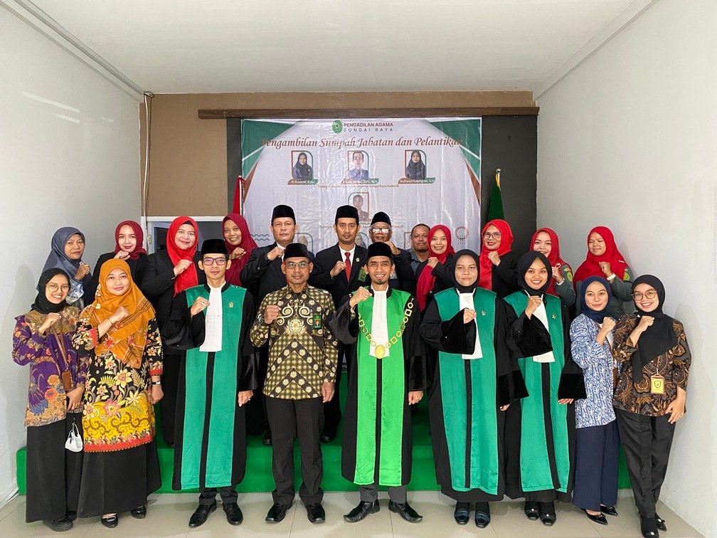 Sungai Raya, 21 Maret 2025 – Pengadilan Agama Sungai Raya menggelar acara pengambilan sumpah dan pelantikan Hakim, Panitera, Panitera Muda, Panitera Pengganti, dan Jurusita/Jurusita Pengganti pada hari Jumat, 21 Maret 2025. Acara ini menjadi momen penting seiring dengan naiknya kelas Pengadilan Agama Sungai Raya dari Kelas II menjadi Kelas IB, sesuai dengan Surat Keputusan Ketua Mahkamah Agung (KMA) RI Nomor 28/KMA/SK.OT1.1/II/2025.