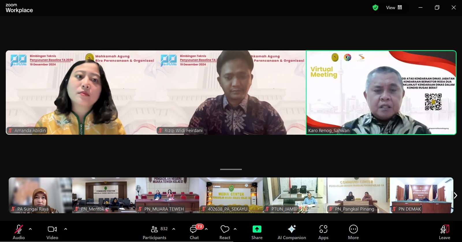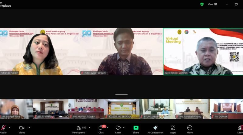 Sungai Raya, 19 Desember 2024 – Demi mewujudkan pengelolaan anggaran yang lebih transparan dan akuntabel, Pengadilan Agama Sungai Raya mengikuti Bimbingan Teknis Penyusunan Baseline Tahun Anggaran 2026 yang diselenggarakan oleh Biro Perencanaan dan Organisasi Badan Urusan Administrasi Mahkamah Agung RI. Kegiatan ini diikuti oleh Sekretaris Pengadilan Agama Sungai Raya, Galih Triatmojo, S.E., M.M., dan Kasubbag Perencanaan, TI dan Pelaporan, Helen Sabrina. E., S.Kom.,M.M.