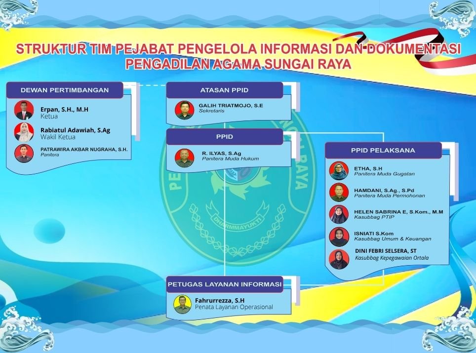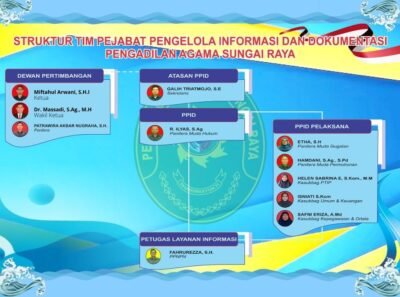 | Pejabat Pengelola Informasi dan Dokumentasi | R.Ilyas, S.Ag | Panitera Muda Hukum Pengadilan Agama Sungai Raya |