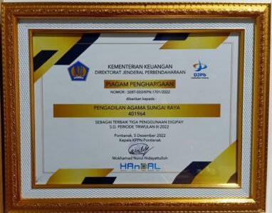 PA Sungai Raya Terbaik 3 Realisasi DIPA 01 Periode Triwulan IV Tahun 2025